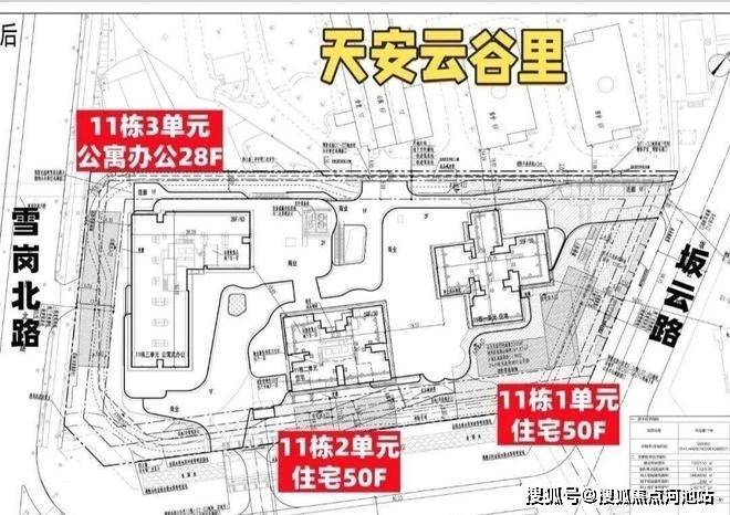 天安云谷里01-05地块,总占地面积约1.5万㎡,总建筑面积约16.5万㎡,计容建筑面积约11.1万㎡,容积率7.24,绿化率40%,共由2栋总高50层住宅组成,另外配建1栋28层公寓办公,其中11栋1/2单元住宅50F,配建约1.6万㎡商业。