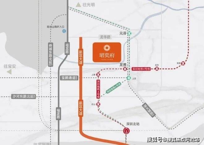 项目距离4号地铁线“龙胜站”约500米,距离6号线元芬站约800米,3站深圳北, 5站福田;另有深大城际连接;临近主干道布龙路,福龙路,未来还有侨城东路北延(在建中)、沙河东路北延(规划中)、宝鹏通道(规划中)。