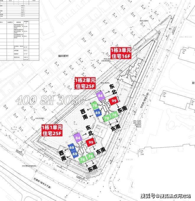 总层高:1栋1、2单元25层/3单元16层