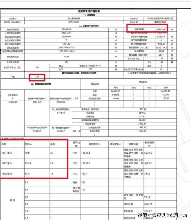 项目1栋1/2单元2梯6户,1栋3单元2梯4户设计,地下室有1层,规划360个车位,车位比1:1.08。