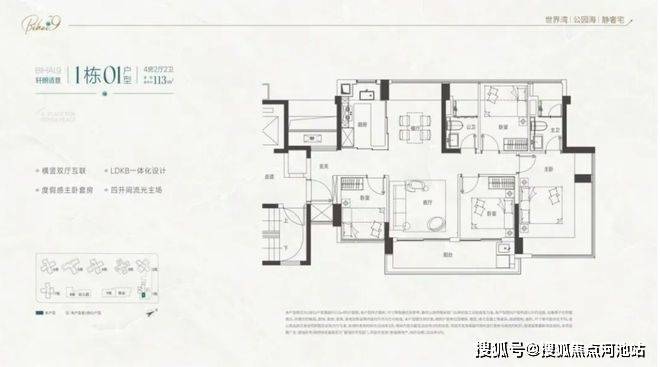 105-122㎡四房:主流改善,2梯4户,西南看海