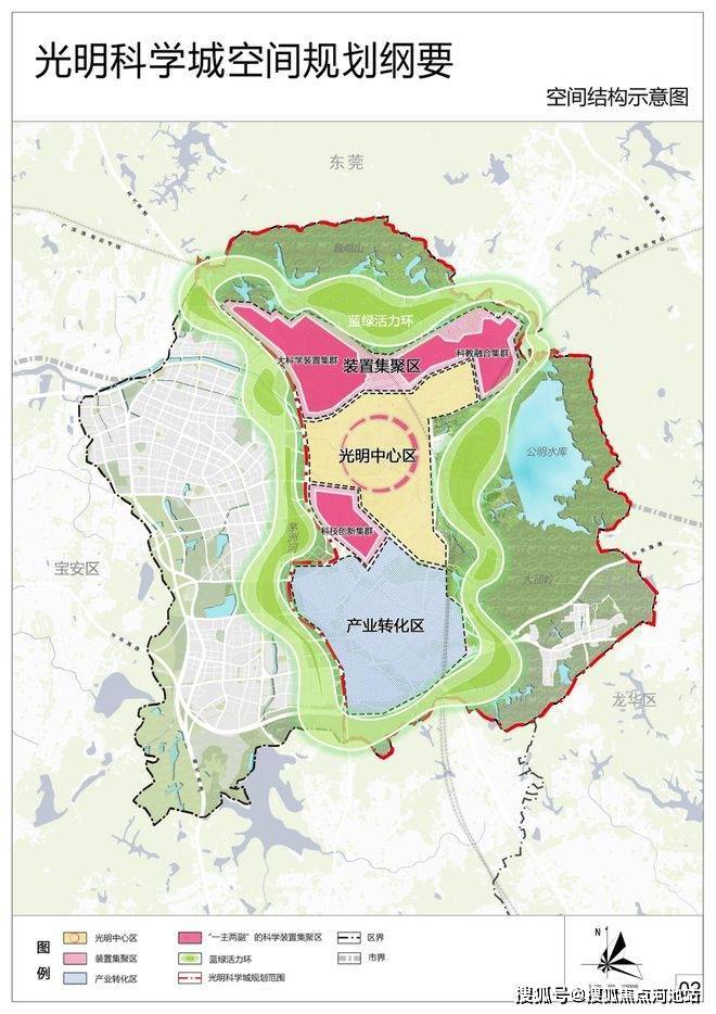 在光明科学城空间规划中我们可以清晰地看到——光明中心区,北邻光明科学城装置集聚区,南接光明科学城产业转化区,既是光明的中心,也是整个科学城的“心脏”。