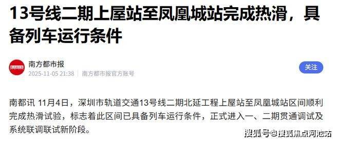 值得一提的是,目前在建的13号线设有“凤凰城站”,属于13号线北延线二期工程。官方释放的信息是,上屋站至凤凰城站区间的热滑试验顺利完成,标志着此区间已具备列车运行条件。