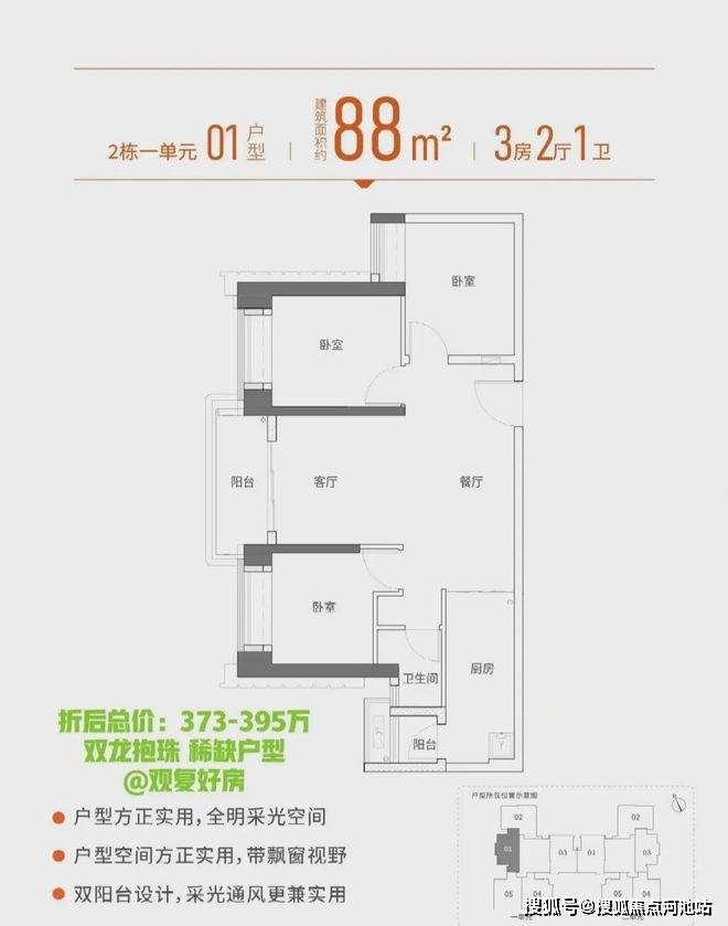 88㎡三房一卫,双龙抱珠稀缺户型,折后373万起