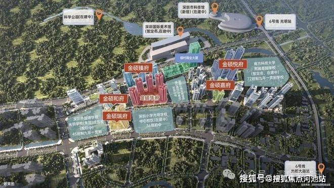 满京华金硕,项目是由满京华集团开发,位于光明区光明中心区光辉大道与狮山三街交汇处,项目所在区域是光明规划最宜居,居住小区板块最大的片区,北侧靠近科学公园,东侧及南侧是深圳小学光明学校狮山校区及初中校区。
