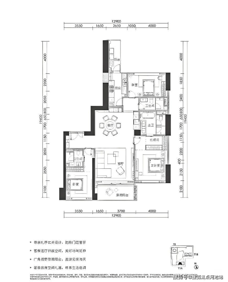 ★468㎡五房三厅六卫:位于1栋一、二单元高区33-38层,一层一户,仅6席。五房四套房设计,主卧L形全景落地窗,270°最佳观海位,南向超大三厅一体,动静分区布局有序。