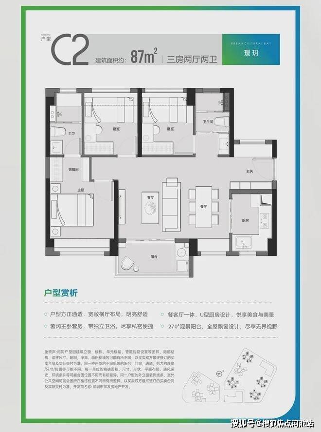 户型方正,全明采光,科学动静分区;大面宽设计、阔绰景观阳台,将自然盛景融入日常;兼具雅致主卧套房,畅享生活的便捷私密;