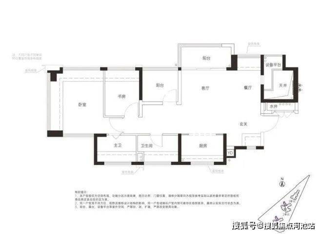 84㎡ 横厅三房:横厅布局增强空间感,全屋多飘窗,主卧套房设计,同样具备灵活改造空间。