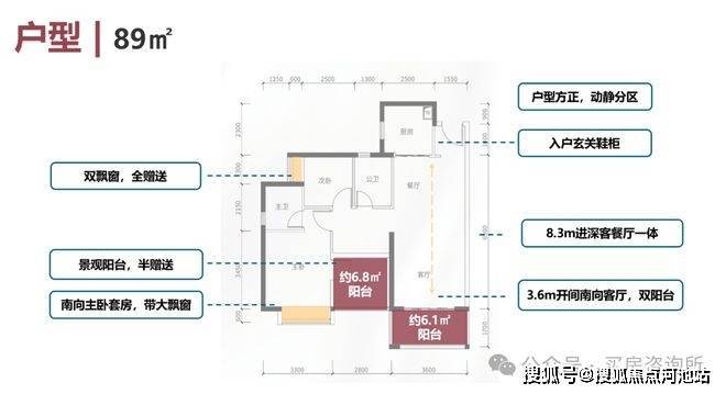 建面约89㎡的户型可以说是优质户型,客厅开间尺度和卧室尺度上做到了均衡,客厅开间约3.6米,主卧开间约3.3米,远超市面上同等面积的户型尺度。完全可以媲美一些超高层100㎡以上的户型尺度,进门看的第一感觉就是采光非常通透,视野开阔,看大雁山和石岩湖,格局也很方正。