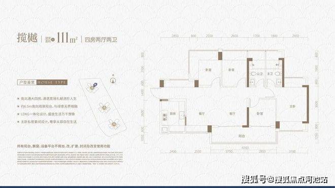 非常出众的四房横厅户型,此前多见于南山和前海的千万级新房。这种设计同样做到了四面采光和四开间朝南,比较受年轻群体的喜爱。
