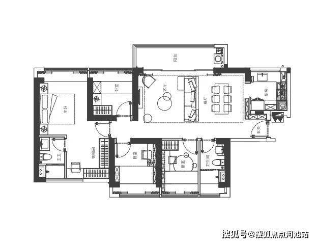 家政阳台定位,6人位餐厅满足多人就餐,主卧独立卫生间