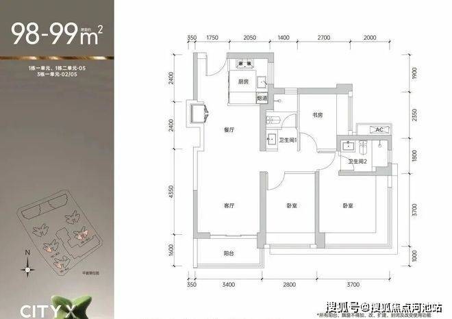 05户型:98平(西南向)单价38500-39400,总价378-387万。