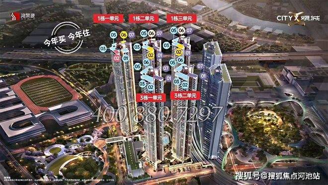 10、总栋数及楼高:由5栋58-59层高住宅组成,其中1栋1单元住宅59F,1栋2/3单元住宅58F,3栋1单元/2单元住宅58F,4栋1/2单元写字楼35F,2栋是1所18班幼儿园,配建有公交首末站。
