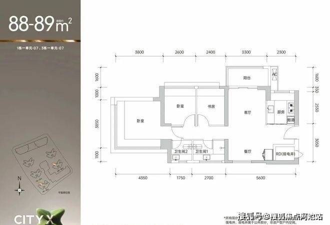 07户型:88平(南北通透)单价38200-39100,总价336-344万。
