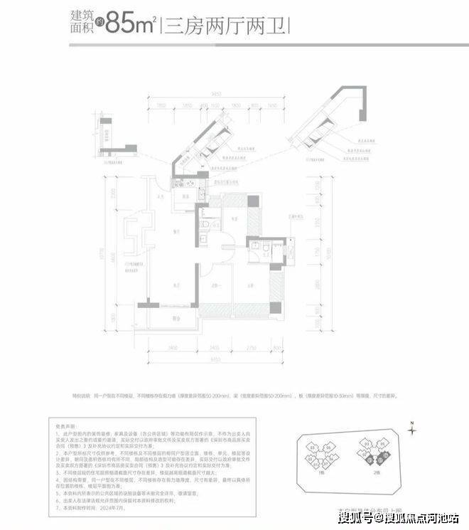 【产品户型】:建筑面积约85-88m²三房两卫、建筑面积约110-114m²四房两卫、建筑面积约113-119㎡四房两卫
