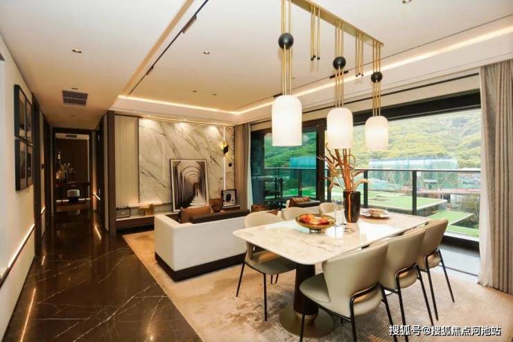 最大亮点在于,实际使用率最高可达97%,空间非常奢阔,有最宽约6.6米山景阳台带270°景观视野,全屋包含两个270°景观飘窗在内,最多9个飘窗,将空间做到极致。