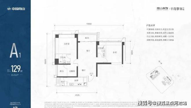 A1有两条腿,分别1-1栋01/02,主朝向是西北向,双龙抱珠格局。