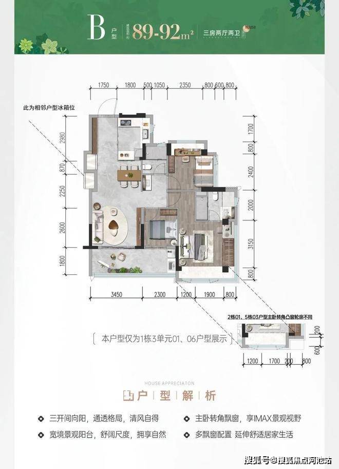 最新消息:深圳宝安沙井【招商会展湾雍境·二期名邸】本次首推1栋3单元,共198套房源,面积有78-80㎡的3房1卫,89-92㎡的3房2卫户型。