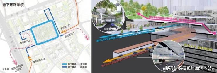 于外,不仅是 4 号线观澜站直连物业,观城还真金白银打造了与“前海地下路网”同级别的市级规划路网系统, 首创梅观高速直通小区,经由地下环道畅连各地块车库, 搭配整体「空中 + 地上 + 地下」的三重立体交通,实现业主的 高效出行 。