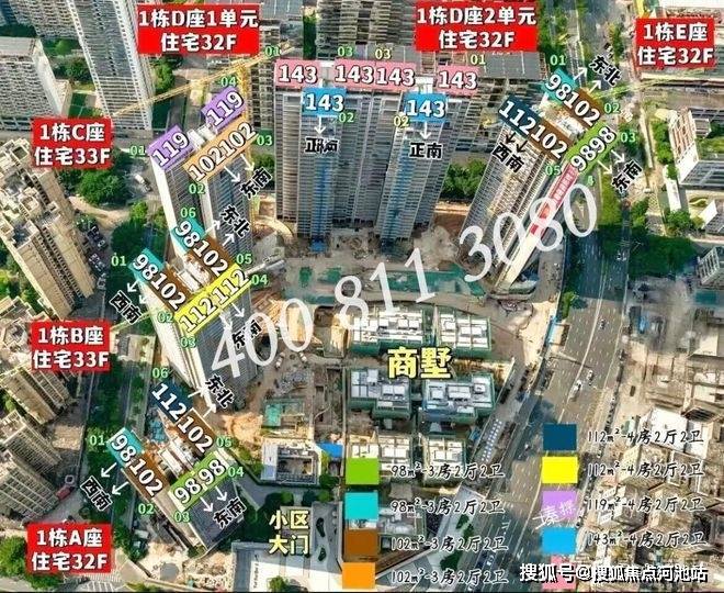 【梯户比】1栋A/B/E座3梯6户,1栋C座2梯4户,1栋D座2梯3户