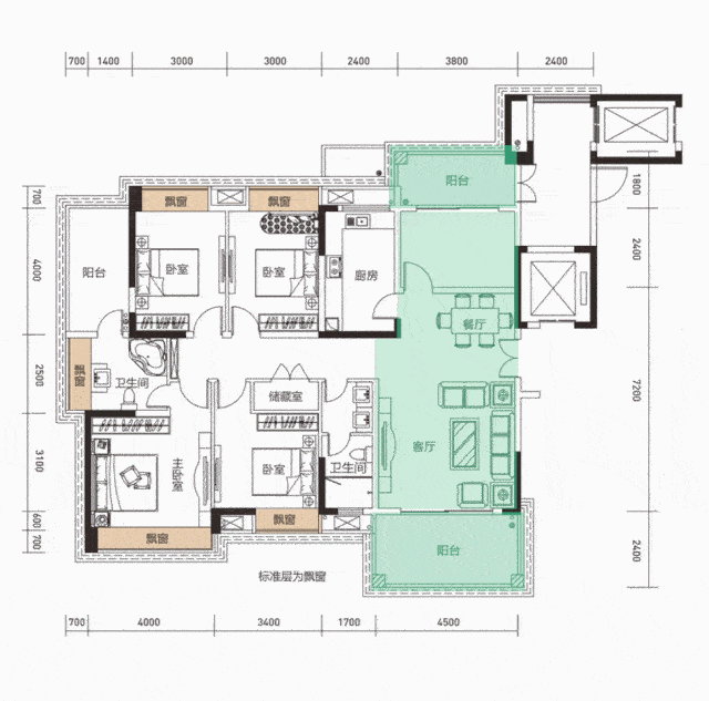 166㎡四房两厅两卫南北通透三阳台