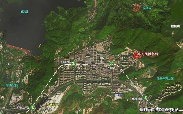 项目位于罗湖莲塘片区,被梧桐山与深圳河包围,环境清幽