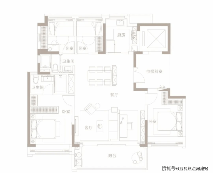 稀有墅质美宅,板式大平层,独梯入户,南北通透四开间朝南,高阶人居范本。