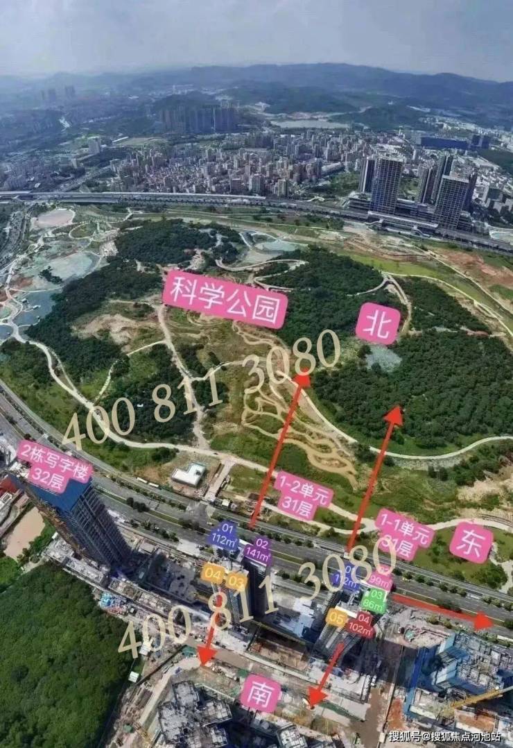 深铁睿著户型朝向航拍示意图: