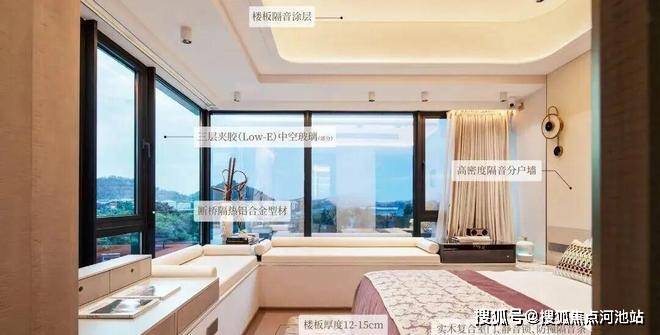 门、窗、楼板、墙体,多重静音体系有效降音降噪,卧室采用三层夹胶 (Low-E) 中空玻璃与加厚楼板有效阻隔外界喧嚣,舒享360度静谧时光。