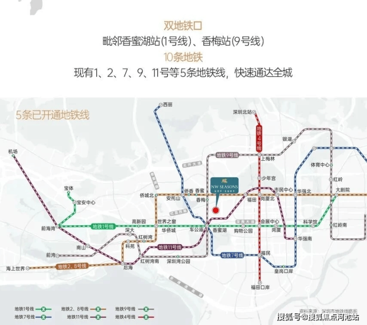 新世界香蜜四季家园项目位置堪称黄金地段,位于福田区景田片区香梅路与新闻路交汇处,紧邻香蜜湖新金融中心,步行500米左右可达1号线香蜜湖站和9号线香梅站,未来还将新增22、24号线双地铁加持,10条地铁线路贯穿全城,自驾经深南大道、北环大道等主干道可快速通达罗湖、南山、前海等区域,立体交通网络出行无忧。