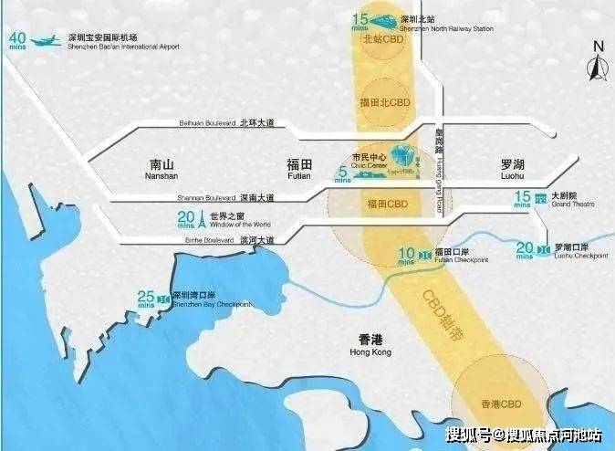 占据城市核芯区域,位居福田CBD北门户,南邻政商区,北与梅林商务区、深圳北站商务区无缝衔接,东承罗湖商圈,西瞰南山高新技术产业基地和前海自贸区。
