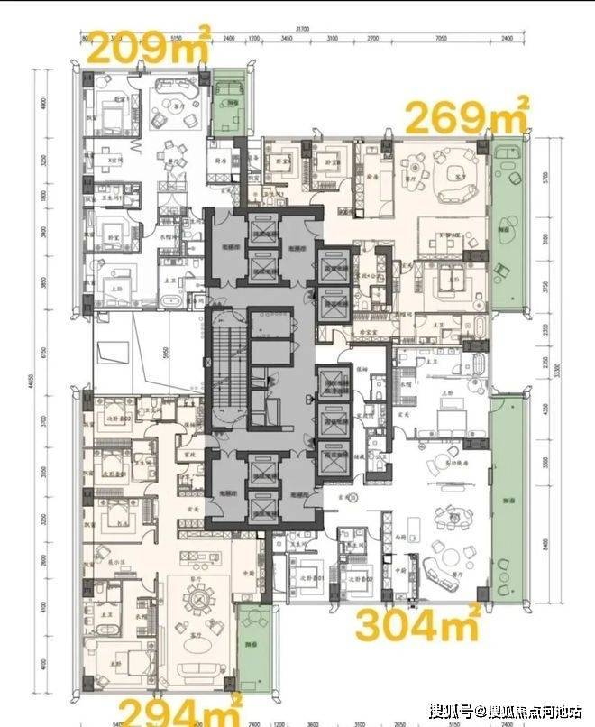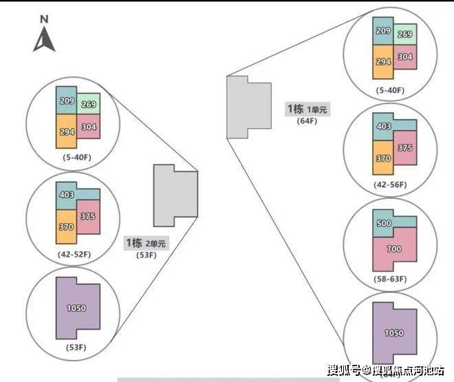 【户型面积】低区209-294-269-304㎡,高区370-375-403㎡,超高区500平-700平-1050㎡
