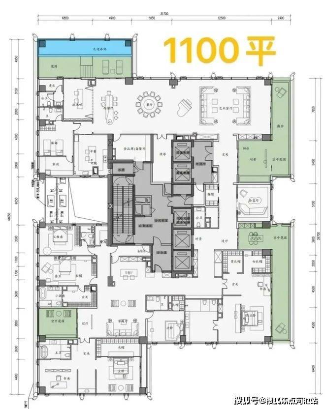 ·顶楼Penthouse约1050㎡顶奢大平层,估计要2个意思以上了,这应该是深圳大平层住宅的顶尖天花板没有之一。