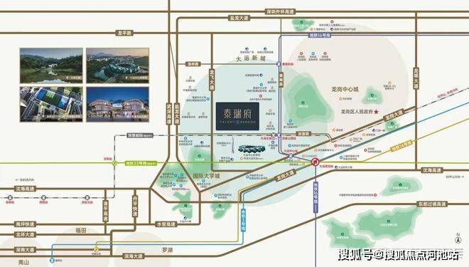 •地铁:紧邻地铁16号线龙城公园站(约600米),2站大运枢纽。未来地铁深惠城际(建设中)在此交汇,4站深圳北枢纽、5站西丽、8站前海;