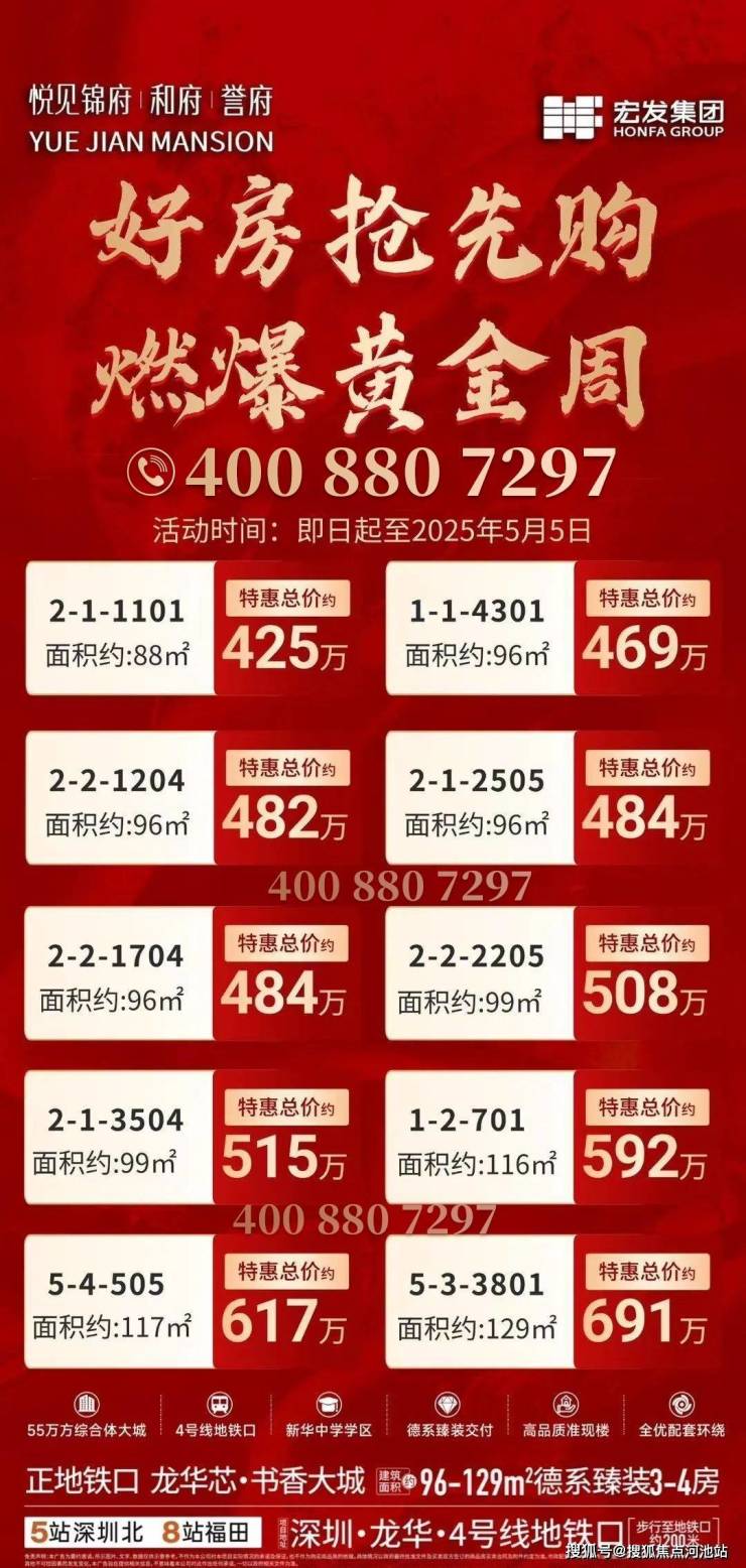 如需了解本楼盘更多详情,欢迎来电咨询深圳宏发悦见誉府开发商售楼处免费400咨询/预约电话:400-880-7297(已认证)中介请勿扰,因近期参观的人员太多,本项目营销中心暂不接受临时到访,为不耽误您的行程,过来楼盘现场参观样板房请务必记得提前来电预约,预约看房的话最终房价还能更加优惠,包您满意!