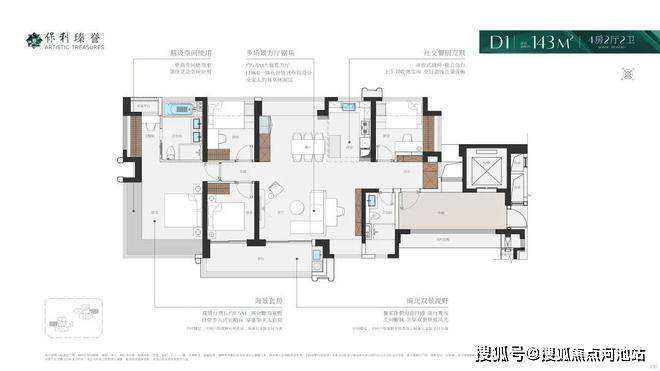 143㎡4+1房3卫,南北通透看海景