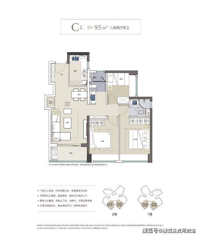 75㎡ 3房1卫,124套,适合刚需上车;95㎡ 3房2卫,186套,主力户型,三口之家改善首选;120㎡ 4房2卫,62套,拥有6.7米超大阳台空间尺度,奢阔居住品质的代表大家族一步到位。
