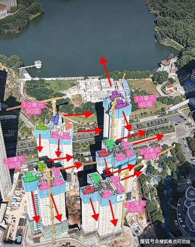 再来看一下首推1-2栋他的这期规划,容积率6.32,规划982户,停车位1500个,四梯五户,已经两梯两户设计,总层高45-51层,楼间距20-50米左右,整体算是偏拥挤,所以说这个数据作为豪宅价卖确实有点草率了