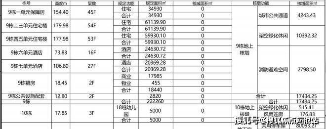 9栋、10栋用地性质为二类居住用地+商业用地,总占面约3.5万㎡,规划建面约22.7万㎡,其中住宅建面约15.6万㎡(含保障性住房3.5万㎡)、商业约1.8万㎡、酒店约4.5万㎡以及幼儿园(18班)等相关配套设施。