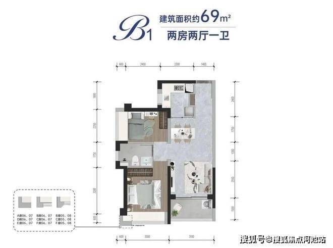 B1、B2、B3户型建筑面积:约69㎡