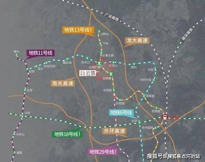 另一个是在建的13号线公明南站(距项目约700米)。13号线被誉为“科技线”,串联起光明科学城、留仙洞总部基地、南山科技园、后海总部基地等重要科技圈,未来必将成为深圳人最重要的快速通勤线之一。