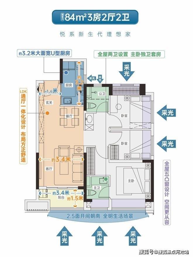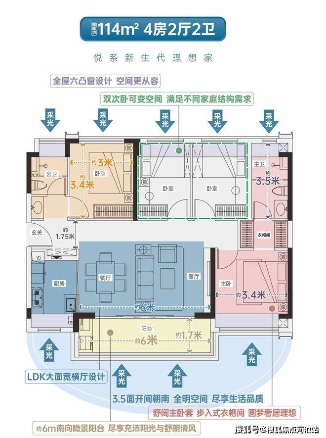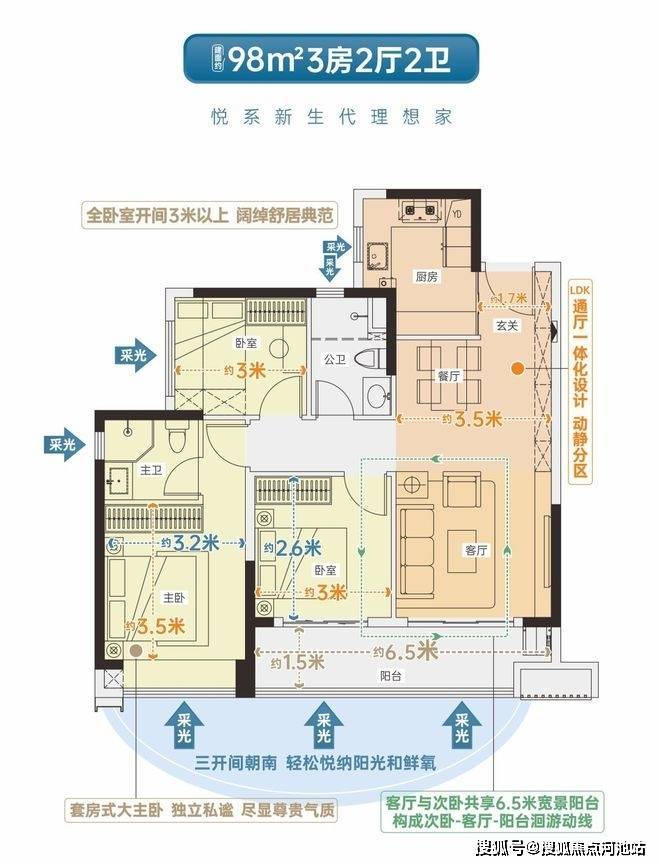 •LDK通厅设计,双开间超6米宽景阳台