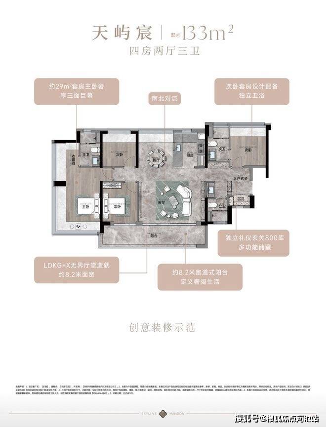建面约83-133㎡3-4房宸式美学新著,LDKB巨幕方厅,跑道式景观阳台,小家化星级酒店主卧套房,270°环幕全景舱,客厅次卧无剪力墙灵动设计,实现超高实用率。
