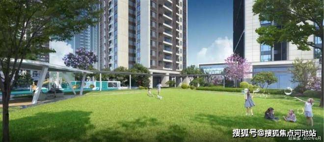 六大园林社区生活场景:街心公园、风雨连廊、社区会客厅、阳光大草坪、趣味儿童乐园、社区体育活动场地尽享美好社区生活