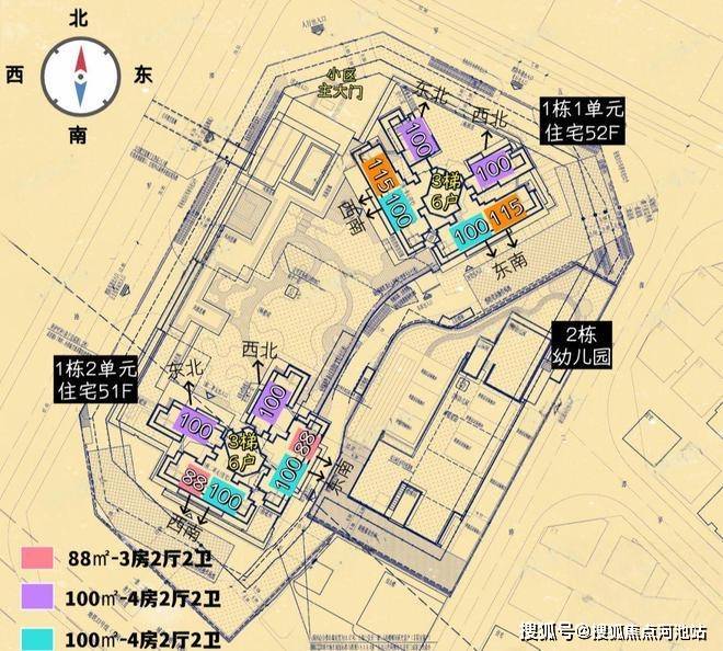 星悦尊府,由星河集团打造,总占地面积约1.18万㎡,总建筑面积约9.45万㎡,计容建筑面积约7.06万㎡,容积率5.4,绿化率40.01%,共由2栋52层高的住宅组成,其中1栋1单元住宅52F,1栋2单元住宅51F,2栋是1所幼儿园,小区配建有公交首末站,栋数之间有风雨连廊。