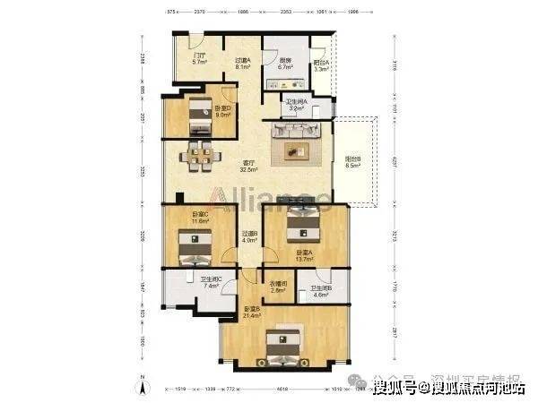 ◆户型:4室2厅1厨3卫2阳台,可改五房