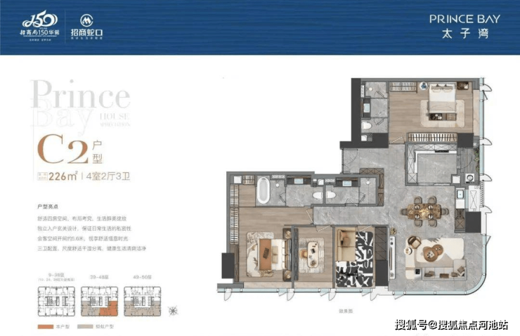 226平:3012-3500万—楼王户型,大四房,南向270度无敌景观