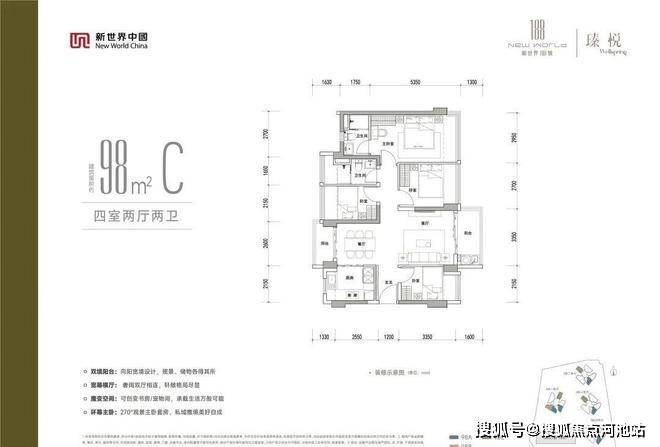 龙岗新世界 188 號,LDKB 一体化设计,全屋飘窗全赠送,精装交付带中央空调,居住质感十足