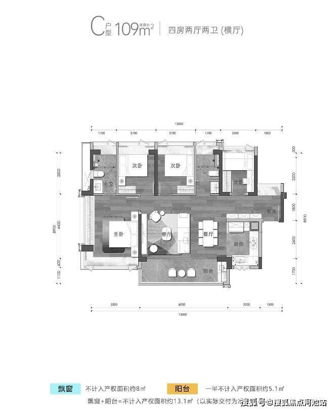 【户型面积】约108-109-138㎡ 4房