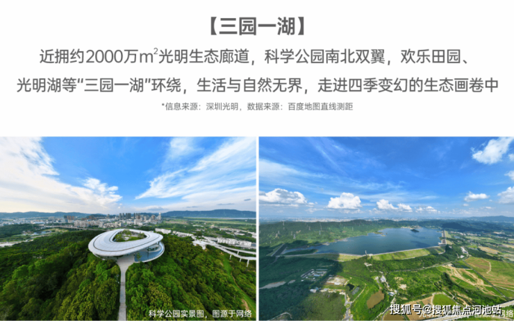 近拥约2000万m’光明生态廊道,科学公园南北双翼,欢乐田园光明湖等“三园一湖"环绕。